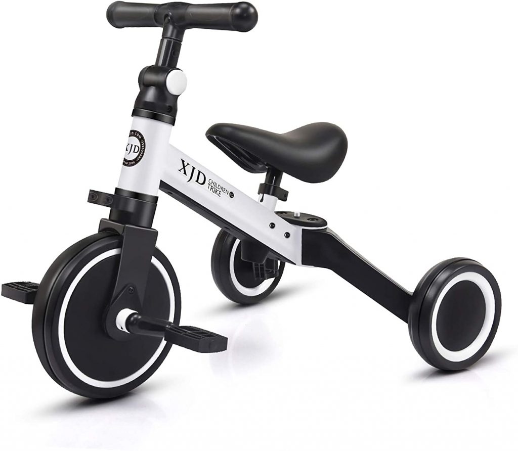 It is a very different-looking trike, but it is good for children to learn the basic position of riding a tricycle. It doesn’t come with pedals, and kids can use it once it is out of the box. With the use of the feet, they can push off and stop the trike itself, so that they can focus on steering and balance. The wheels are small and are streamlined for a ride that’s smooth and quiet, and it’s so light that it can be folded in seconds to put it away. It is nice, and it is a good way to learn, and it’s great for small spaces in the home. Plus, it’s pretty cheap too.