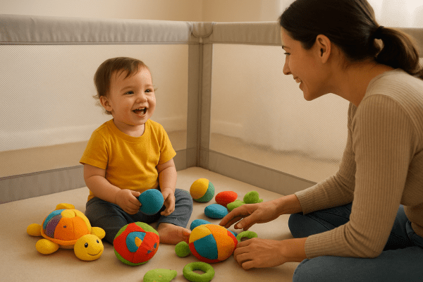 Avoid sharp toys and small objects in the baby playpen. Choose soft, easy-to-clean toddler toys to fit the play equipment for toddlers. Regularly remind children of safe playpen rules. Consistent adult attention is essential. Next, review Safe toy choices and effective supervision practices to support better playpen safety.