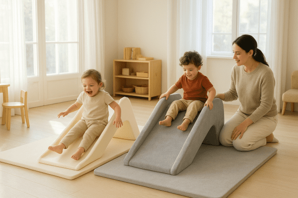 - Indoor climbing slides with ladder features encourage gross motor development but require extra space for safe use.