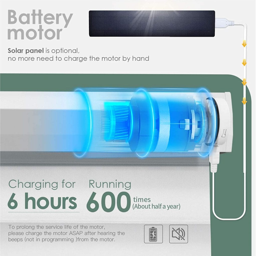 - Solar power – Many power window treatment manufacturers also make solar panels that can be purchased to keep your shades powered up. You won’t have to worry about charging the battery and it’s more eco-friendly.