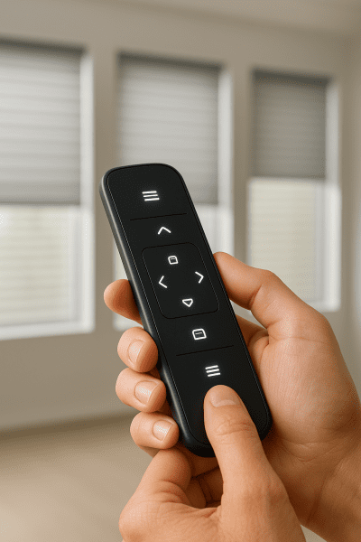 - Remote control blinds with voice control integration enable hands-free operation through smart home devices.